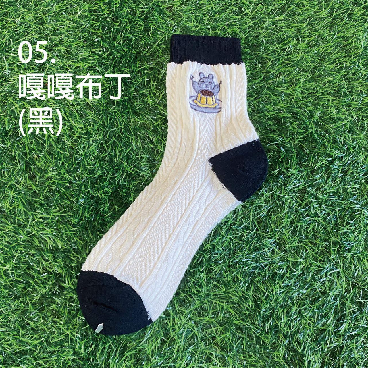 *品名 : WA0012-好兔聯名中筒襪-05嘎嘎布丁(黑)